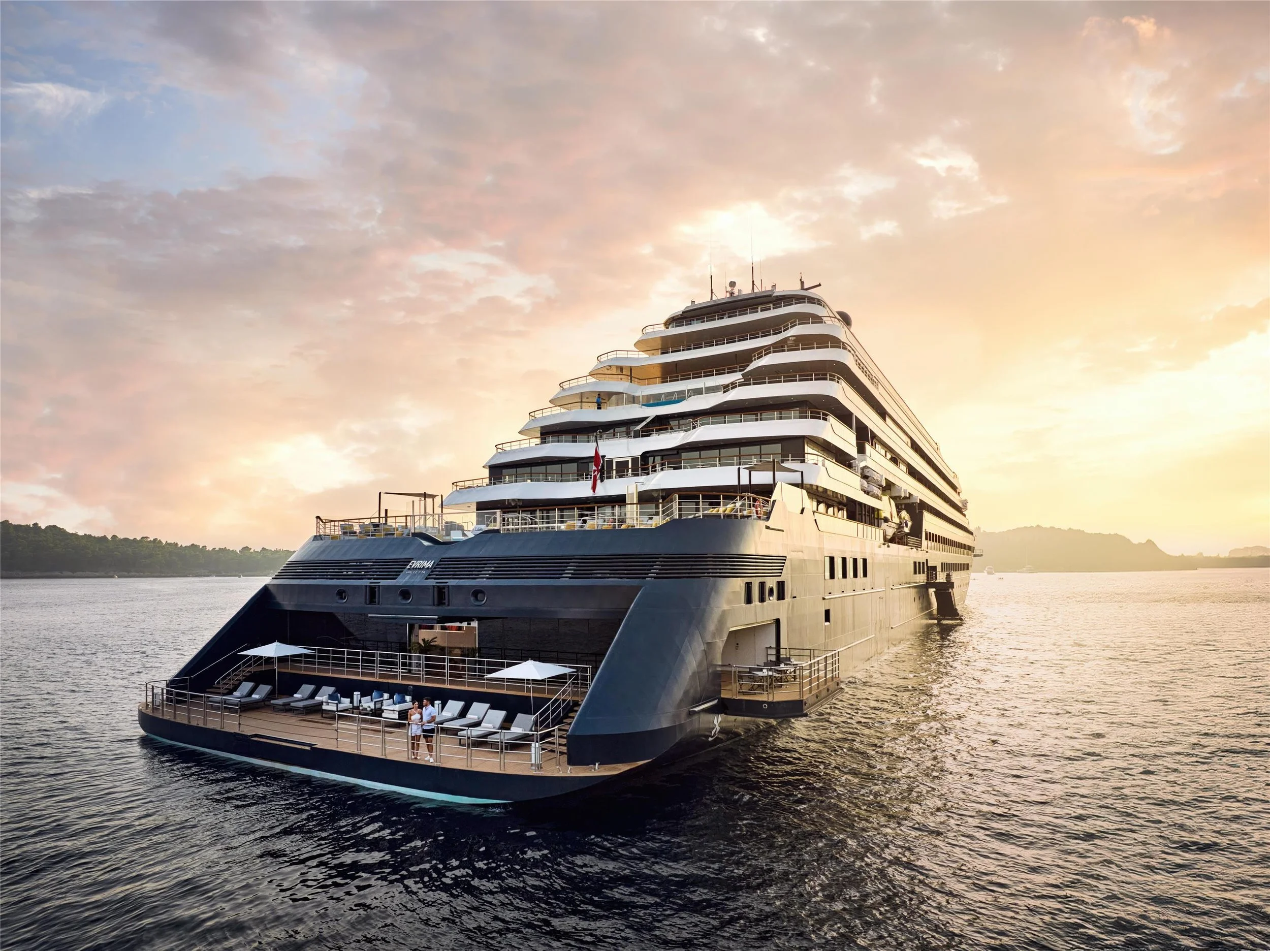 Evrima: The debut yacht, designed for 298 guests, feels more like a modern coastal retreat than a traditional ship. Each suite includes a private terrace, and the ratio of crew to guests ensures anticipatory service without intrusion.