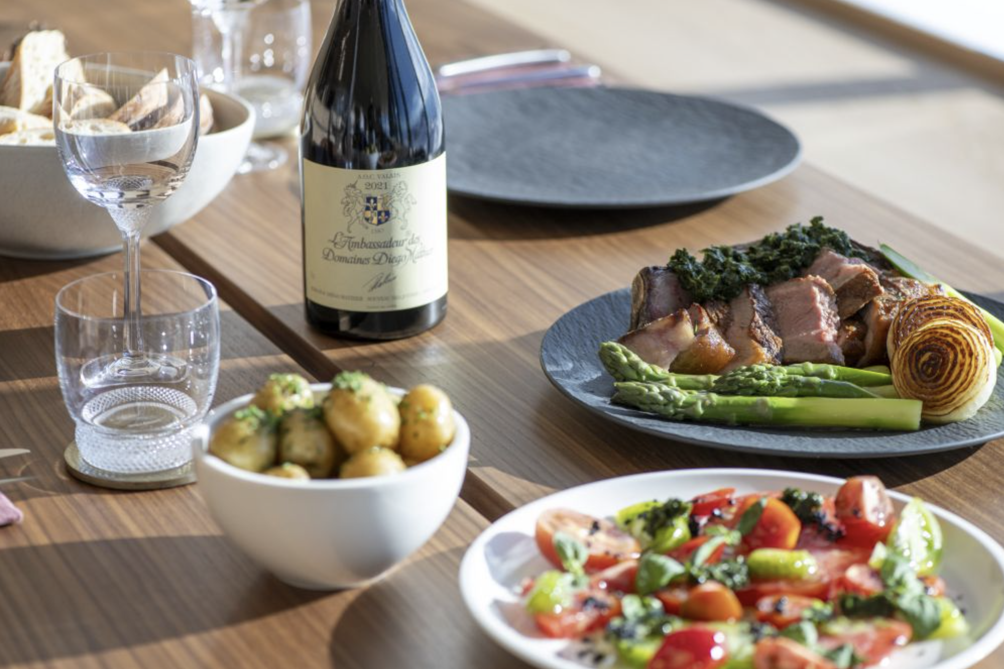 Tea and cafés in the morning light; light snacks, tisanes, or aperitifs in the afternoon as you return from touring or skiing.